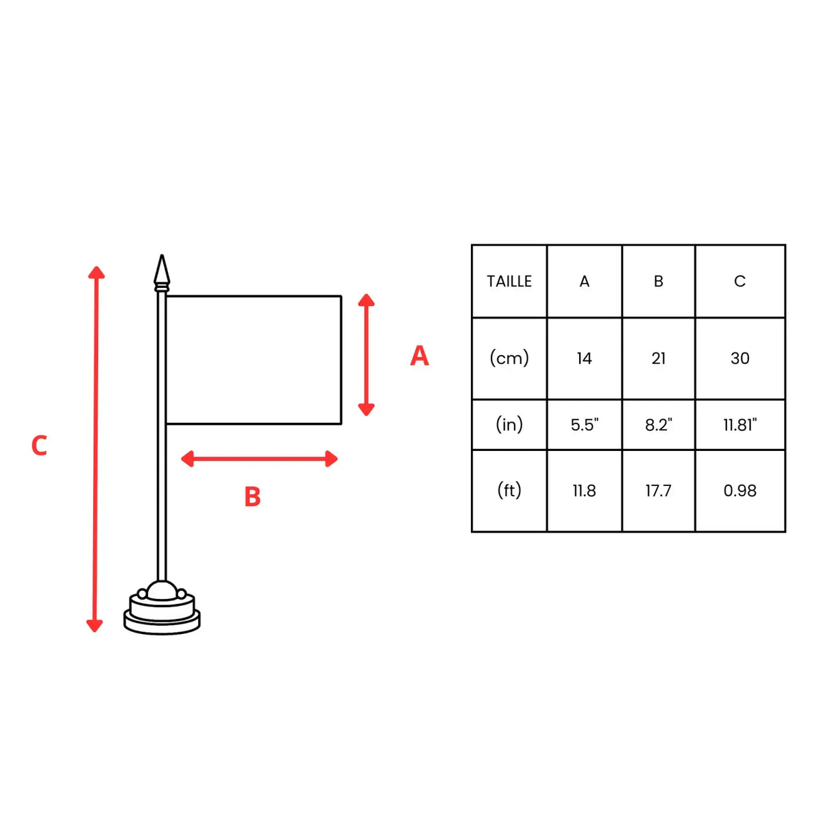Afmetingen vlag: 14 x 21 cm (5,5 x 8,2 inch of ongeveer 0,45 x 0,68 voet).