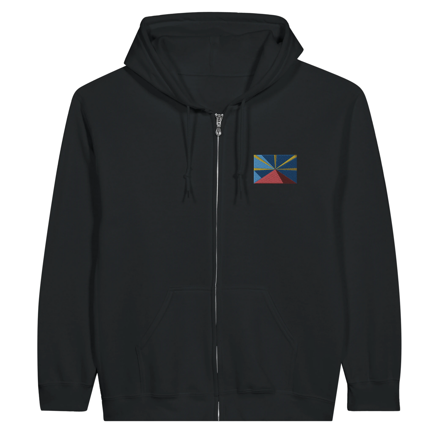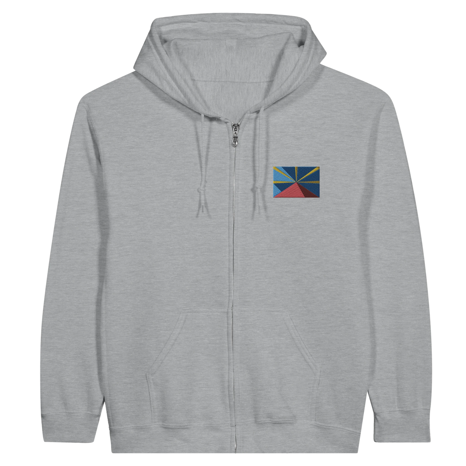 Bluza z kapturem zapinana na zamek – Flaga Reunion – Haft – Mieszanka bawełny