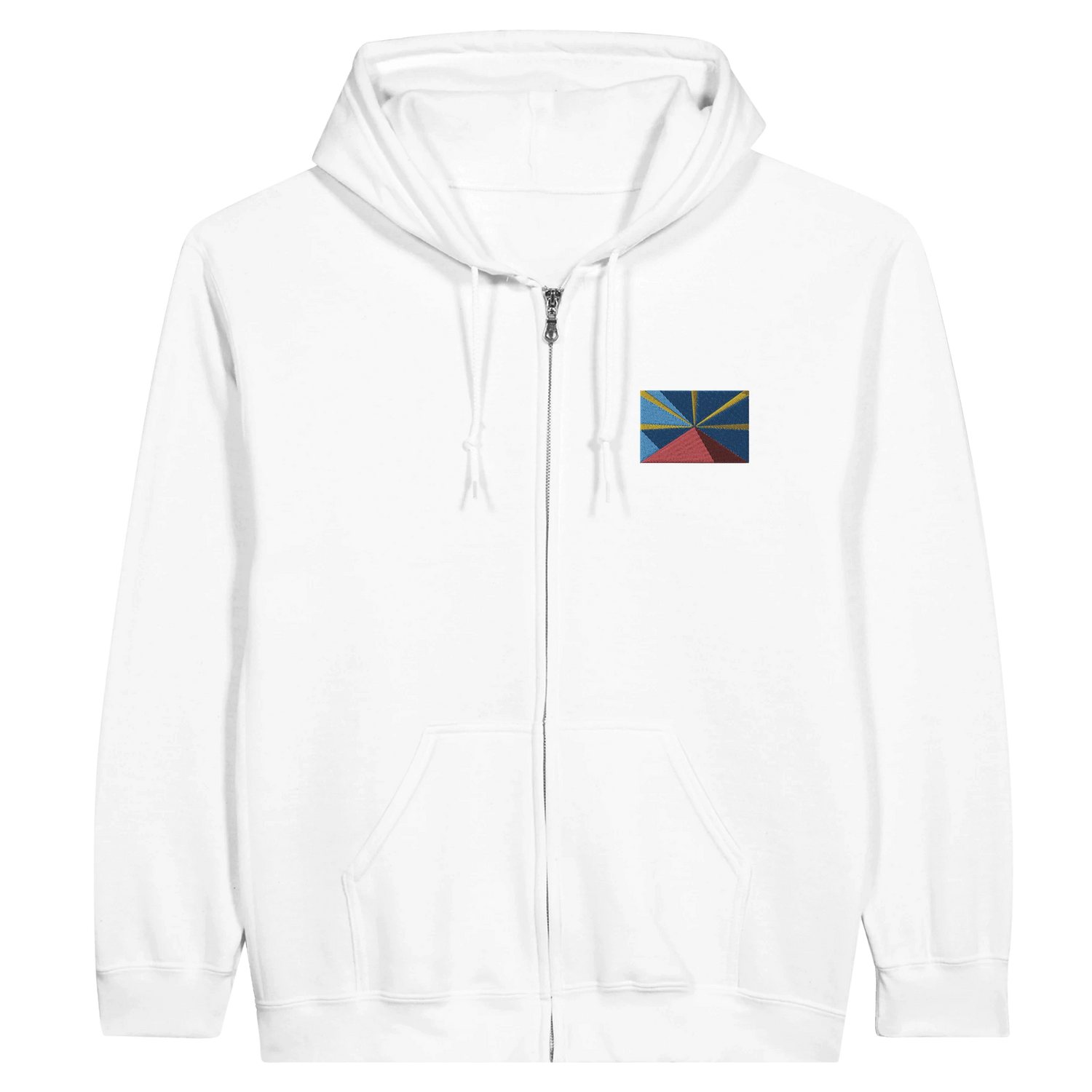Bluza z kapturem zapinana na zamek – Flaga Reunion – Haft – Mieszanka bawełny - Biały / S is backordered and will ship as soon as it is back in stock.