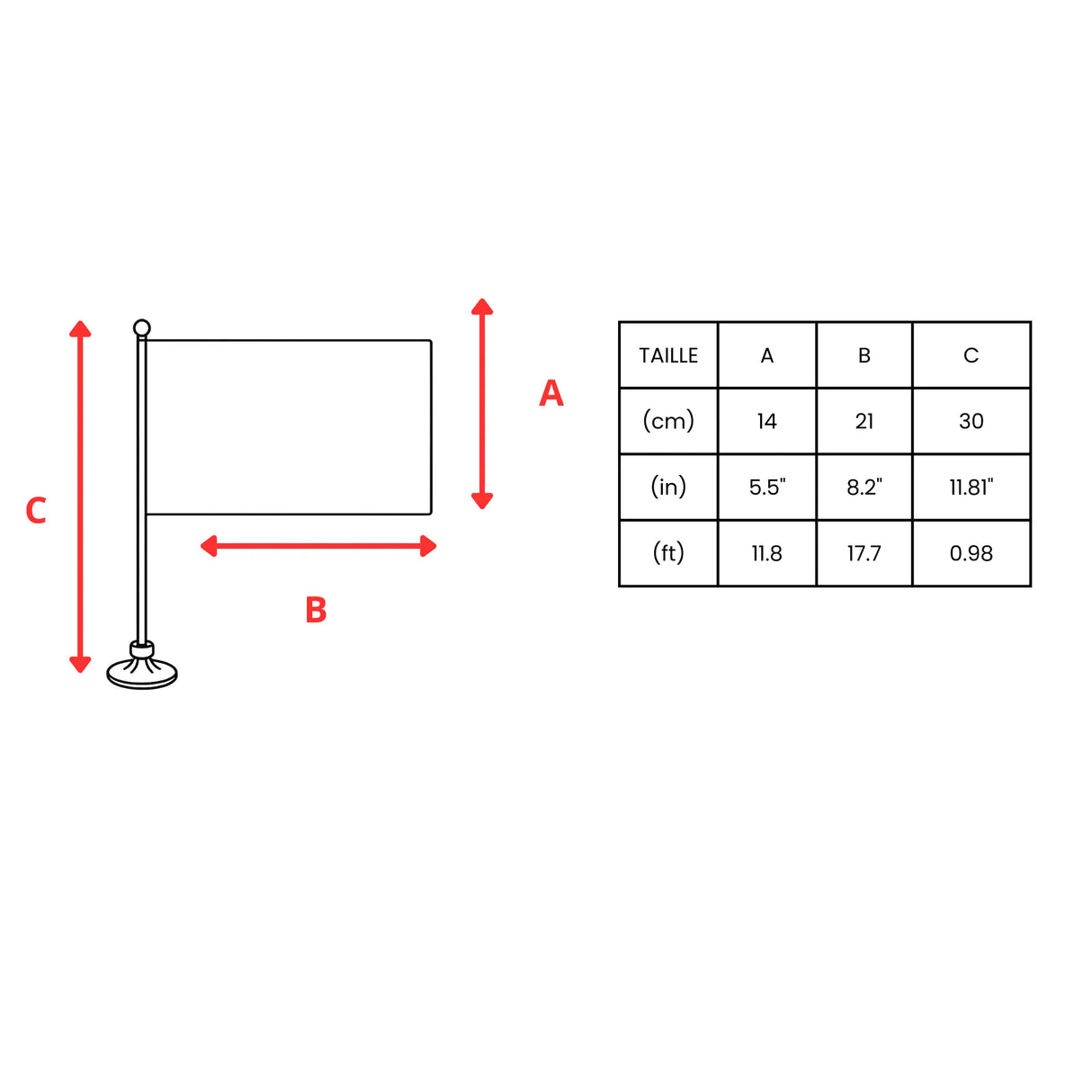 Pole Height: 30 cm (11.81 inches or approximately 0.98 feet). This size offers a good grip and excellent visibility.