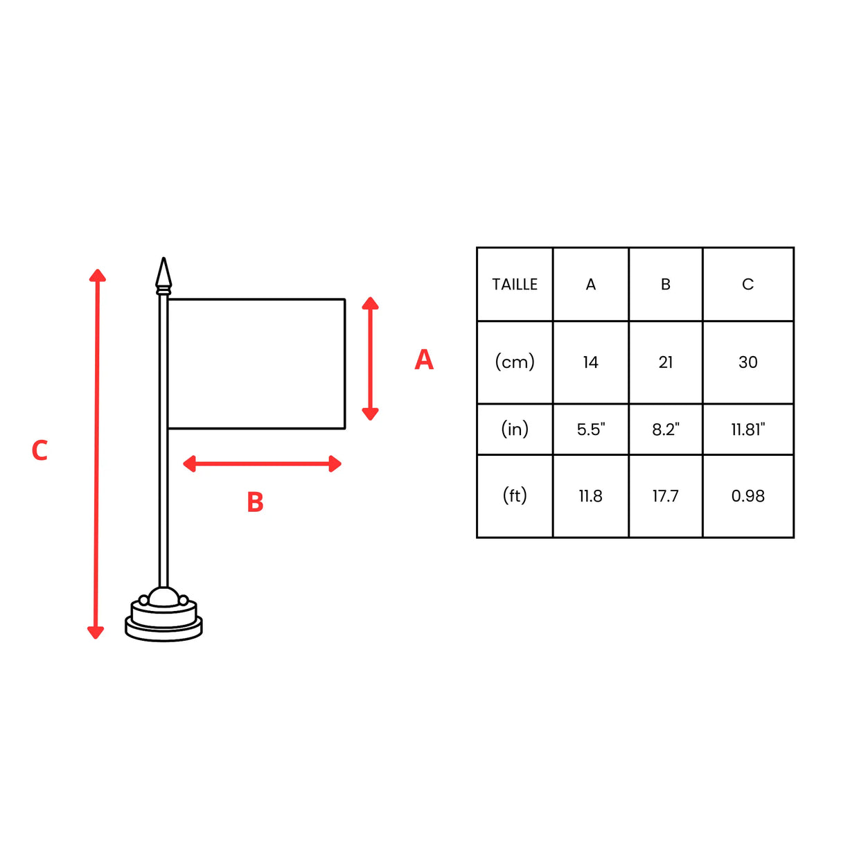 Flag Dimensions: 14 x 21 cm (5.5 x 8.2 inches or approximately 0.45 x 0.68 feet).