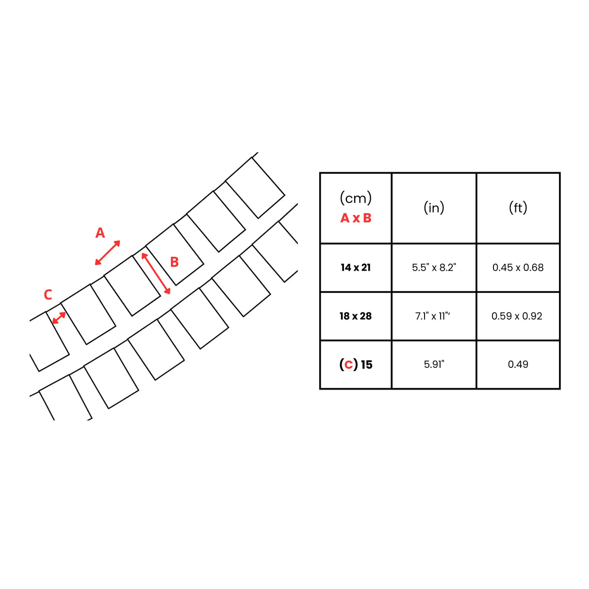 間距:每面旗幟之間為 15 公分(5.9 英吋或約 0.49 英尺),以實現和諧的展示。